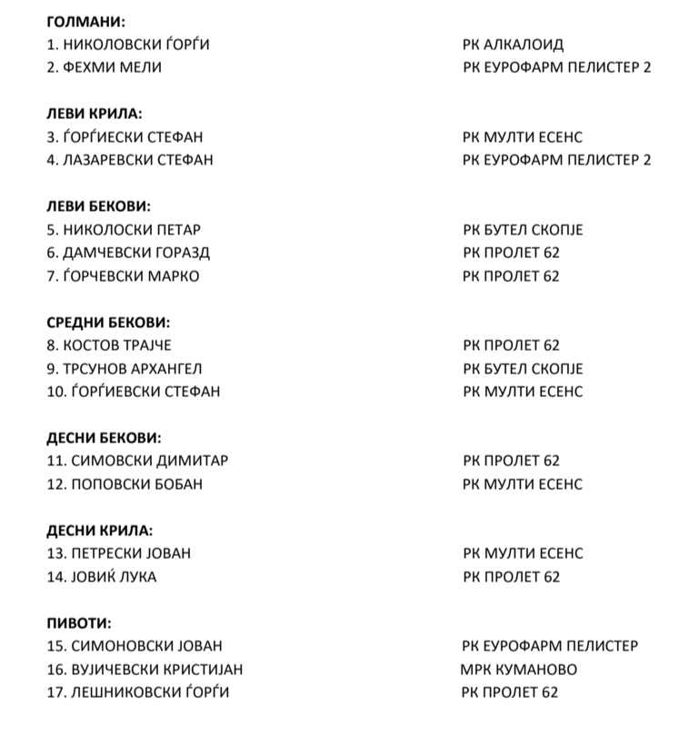На списокот кај Кузманоски партиципираат 17 ракометари, а поголемиот дел од нив играа на Европскиот младински олимписки фестивал во Скопје (ЕМОФ).
