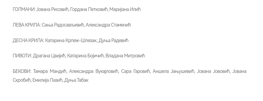 Од поискусните во составот на северниот сосед тука се и Сања Радосављевиќ, Јована Рисовиќ, Јована Јововиќ, Анѓела Јањушевиќ и Дуња Табак.