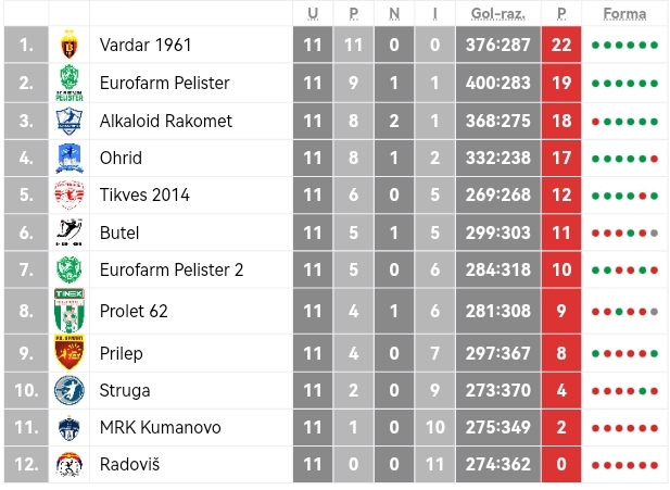 Кавадарчани сега на своето конто имаат 12 бода, со што го престигнаа скопскиот тим на табелата и по 11 одиграни кола се позиционирани на петтото место.