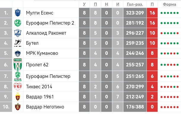 На победа во 8. коло се израдуваа и Бутел, Пролет, Еурофарм Пелистер 2 и бранителот на титулата, тимот на Мулти Есенс.