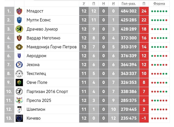 Втората позиција носи суперлигашки бараж, додека првопласираниот обезбедува директен пласман во најквалитетното домашно натпреварување. Во следното 14. коло, кое ќе биде последно за есенскиот дел, ракометарите на Мулти Есенс пред својата публика ќе играат против Македонија Ѓорче Петров.