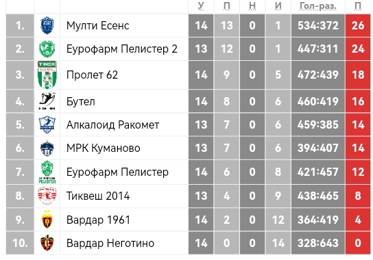 Вардар – Еурофарм Пелистер 25:30 (8:14)