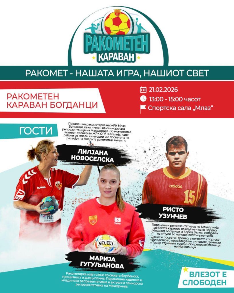 Ракометната федерација на Македонија продолжува со реализацијата на ракометниот караван, а утре домаќин ќе биде Богданци – средина која традиционално дава репрезентативци.