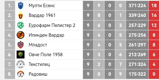Мулти Есенс без проблеми обезбеди победа од 45:21 против Овче Поле. Победничката екипа беше предводена од Стефан Матевски и Тома Симоновски, кои постигнаа по шест погодоци. Во редовите на Овче Поле се истакнаа Стефан Паневски и Огнен Андусов со по пет погодоци. На победа, четврта во тековната сезона, се радуваше и Алкалоид, кој славеше на гостувањето кај Охрид со 29:27. Кадетскиот репрезентативец Максим Гарбески беше прво име во победничкиот табор со осум погодоци, додека 13-те погодоци на Тане Јанчески беа премалку за барем реми на домаќините.