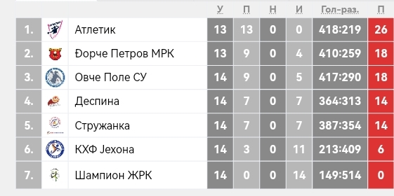 На победа во 16. коло се радуваше и Јехона, а новиот клуб на ракометната мапа во Македонија – Атлетик на гостувањето во Прилеп кај Деспина со подобрата игра во вториот дел стигна до нова победа за 13 од 13 во Првата лига.