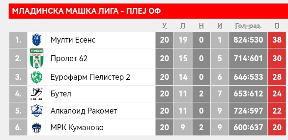 Со натпреварот меѓу Куманово и Бутел беше комплетирано 2. коло од младинскиот плеј-оф/аут, а овој дуел заврши без победник, 33:33, откако двете екипи не реализираа во последните секунди, односно голманите Атанасиј Трсунов (Бутел) и Григор Трајковски (Куманово) не дозволија да бидат совладани.